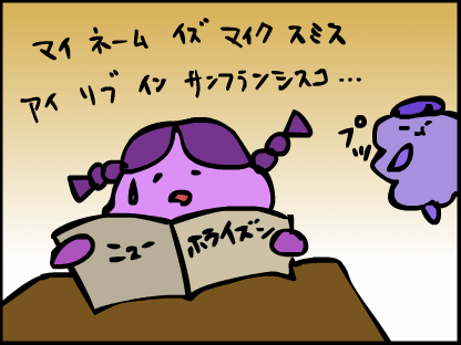 なのでみなさんも、他の人のなまりには優しい気持ちでいることが英語上達のポイントかもしれません。私もカタカナ英語を見習って、クリアで聞きとりやすい英語を話せるように頑張りたいと思います。(それから、何かうまくいかない時に「どうせ自分はなまってるから」と「なまりのせい」にして逃げないように、と思う今日この頃です。)